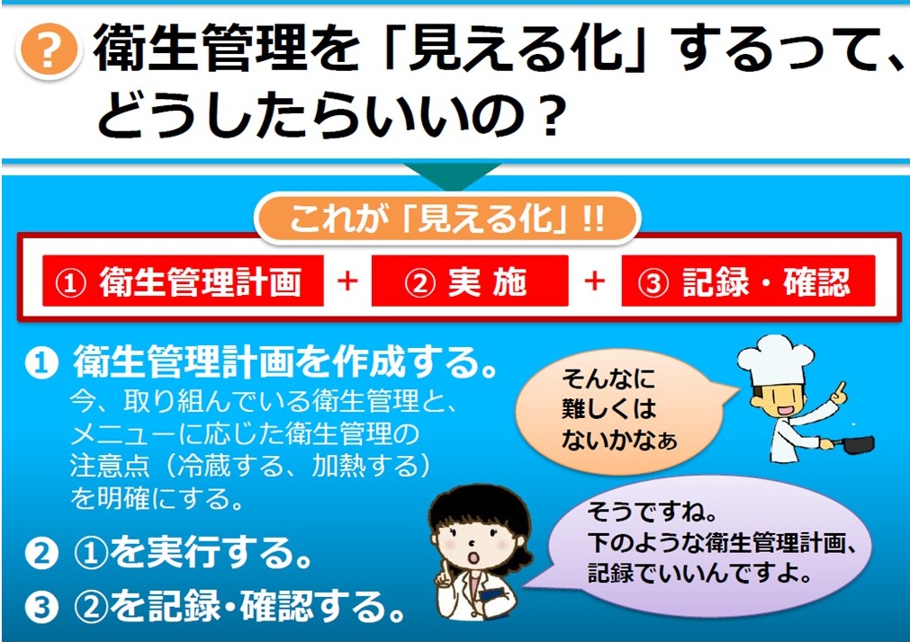 ところで、この図では衛生管理計画の作成・実施・記録を「衛生管理の見える化」としています。意図することろは理解できますが、果たして本当にこれだけで「衛生状態の可視化」ができるでしょうか?