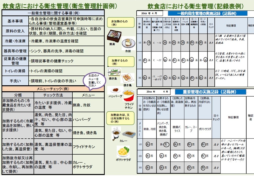 厚生労働省では、飲食店向けに「衛生管理計画」として下のような図を挙げています。しかし、これはあくまでも一例にすぎません。